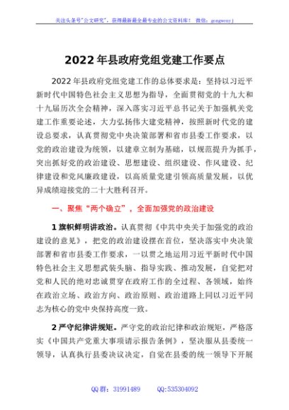 / 2022年县政府党组党建工作要点