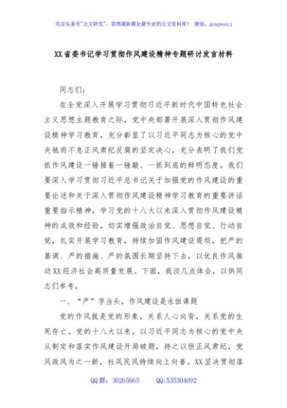 XX省委书记学习贯彻作风建设精神专题研讨发言材料