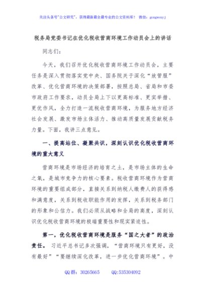 / 税务局党委书记在优化税收营商环境工作动员会上的讲话