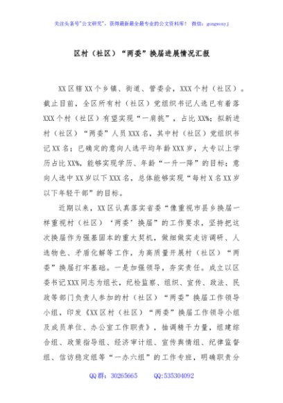 / 区村(社区)“两委”换届进展情况汇报