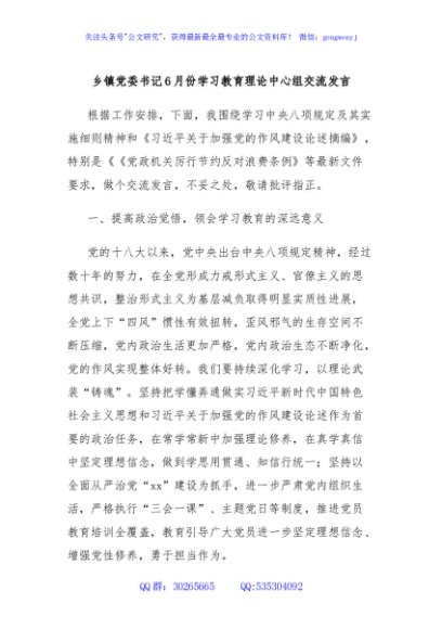 / 乡镇党委书记6月份学习教育理论中心组交流发言