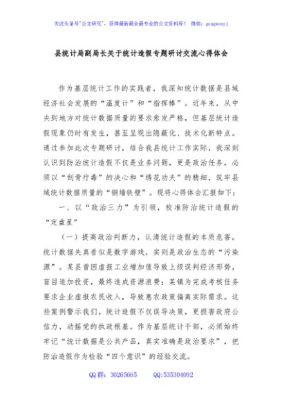 / 县统计局副局长关于统计造假专题研讨交流心得体会