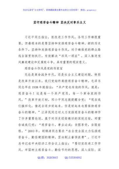 / 坚守艰苦奋斗精神 坚决反对享乐主义
