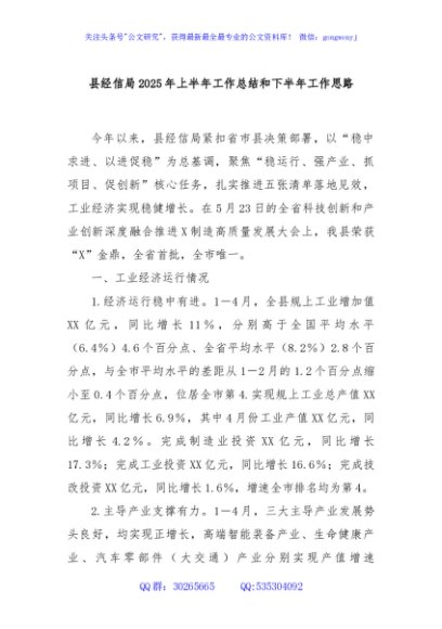/ 县经信局2025年上半年工作总结和下半年工作思路