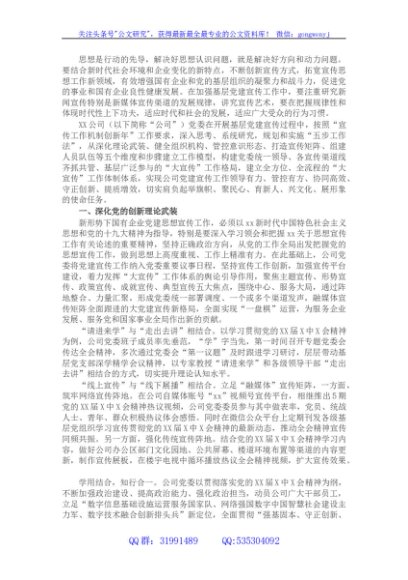 / 国企党建宣传工作经验材料