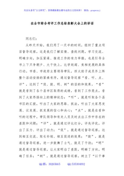 / 在全市综合考评工作总结表彰大会上的讲话