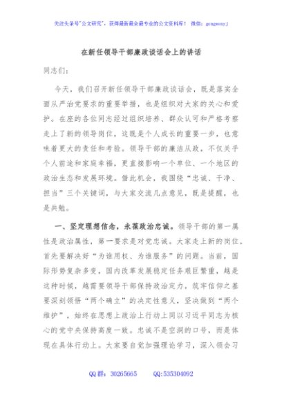 / 在新任领导干部廉政谈话会上的讲话