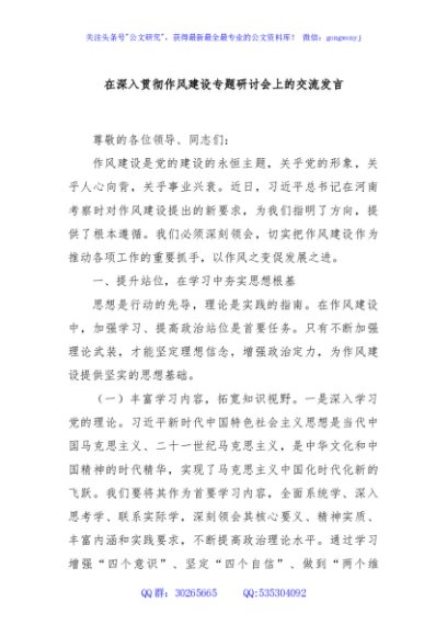 / 在深入贯彻作风建设专题研讨会上的交流发言