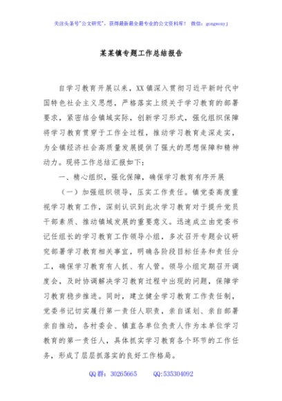 / 某某镇专题工作总结报告