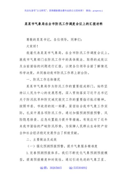 / 某某市气象局在全市防汛工作调度会议上的汇报材料