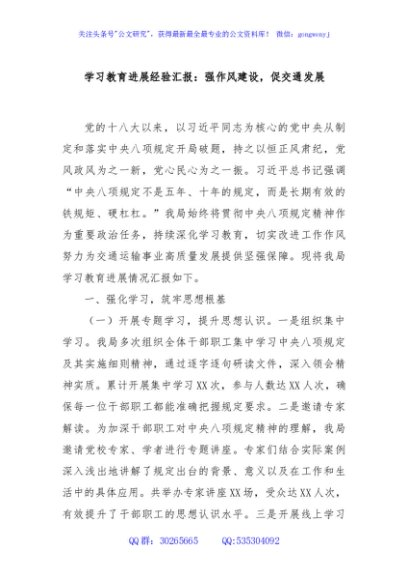 / 学习教育进展经验汇报:强作风建设,促交通发展