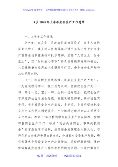/ X乡2025年上半年安全生产工作总结