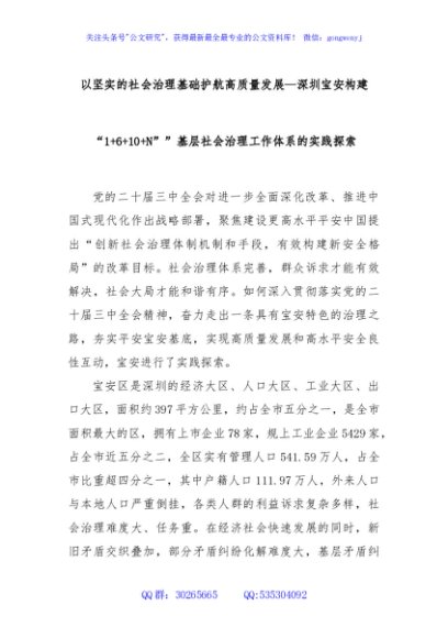 / 以坚实的社会治理基础护航高质量发展—深圳宝安构建“1+6+10+N””基层社会治理工作体系的实践探索