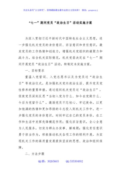 / “七一”期间党员“政治生日”活动实施方案