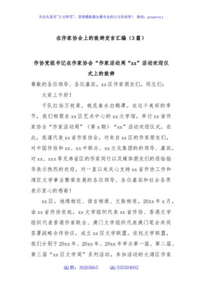 / (3篇)在作家协会上的致辞发言汇编