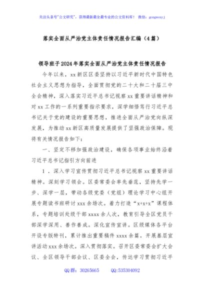 / (4篇)落实全面从严治党主体责任情况报告汇编