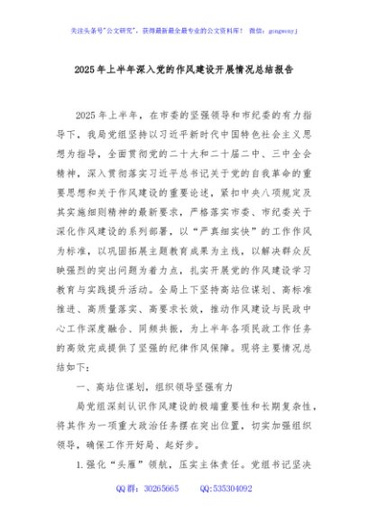 / 2025年上半年深入党的作风建设开展情况总结报告