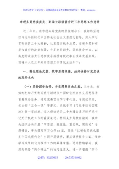 / 市税务局党委委员、副局长职级晋升近三年思想工作总结