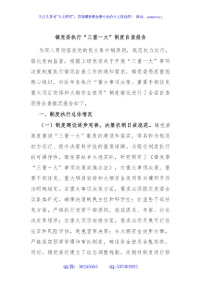 / 镇党委执行“三重一大”制度自查报告