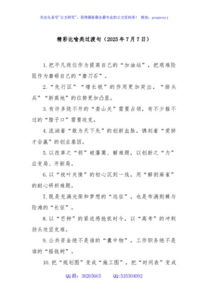 / 精彩比喻类过渡句(2025年7月7日)