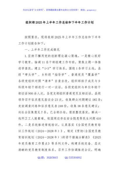 / 组织部2025年上半年工作总结和下半年工作计划