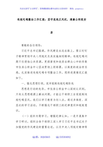 / 违规吃喝整治工作汇报:坚守底线正风纪,清廉公积筑安居