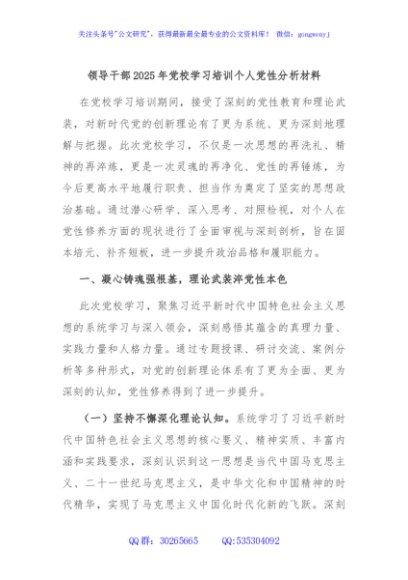 / 领导干部2025年党校学习培训个人党性分析材料