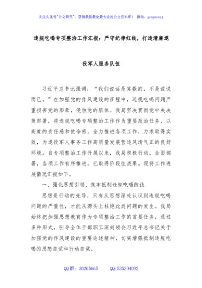 违规吃喝专项整治工作汇报:严守纪律红线,打造清廉退役军人服务队伍