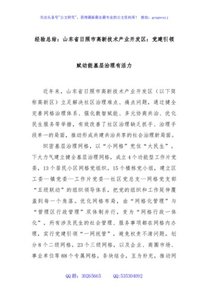 / 经验总结:山东省日照市高新技术产业开发区:党建引领赋动能基层治理有活力