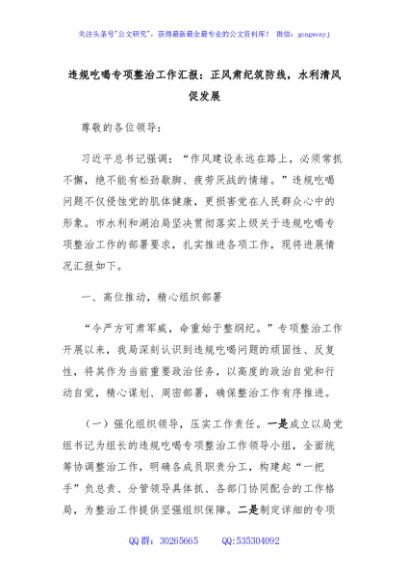 违规吃喝专项整治工作汇报:正风肃纪筑防线,水利清风促发展