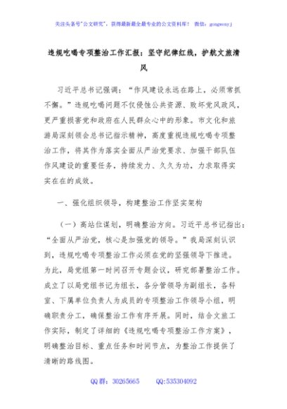 违规吃喝专项整治工作汇报:坚守纪律红线,护航文旅清风
