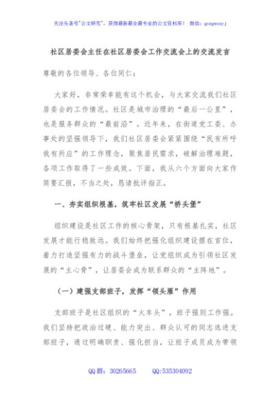 / 社区居委会主任在社区居委会工作交流会上的交流发言