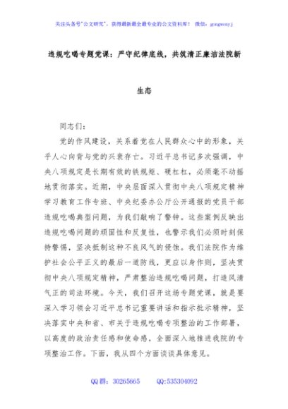 违规吃喝专题党课:严守纪律底线,共筑清正廉洁法院新生态