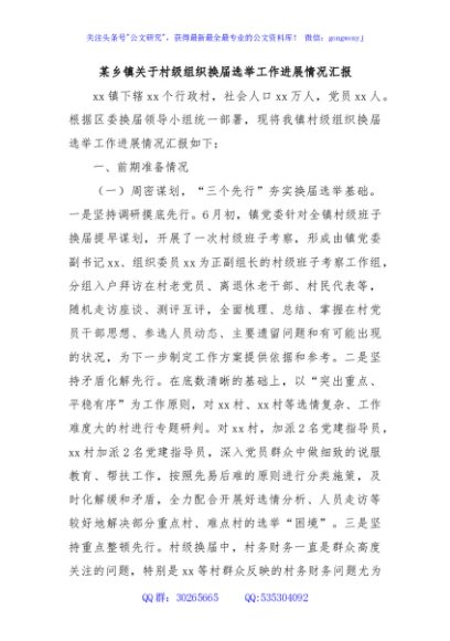 某乡镇关于村级组织换届选举工作进展情况汇报
