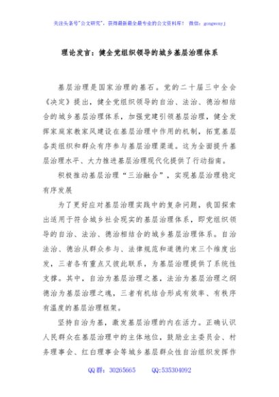 / 理论发言:健全党组织领导的城乡基层治理体系
