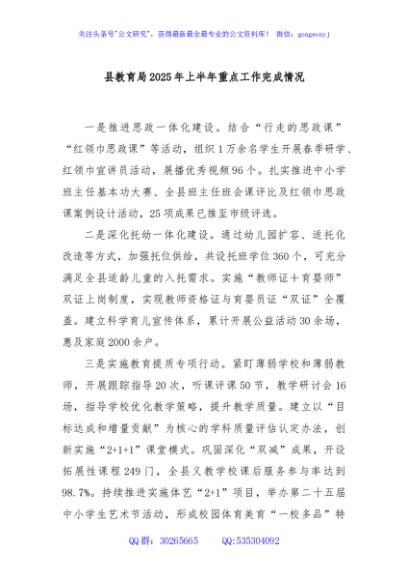 / 县教育局2025年上半年重点工作完成情况