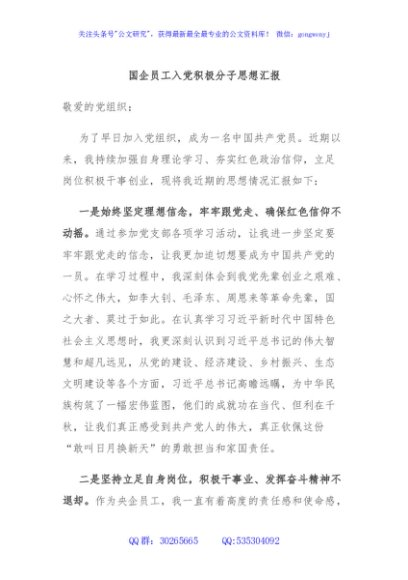 / 国企员工入党积极分子思想汇报