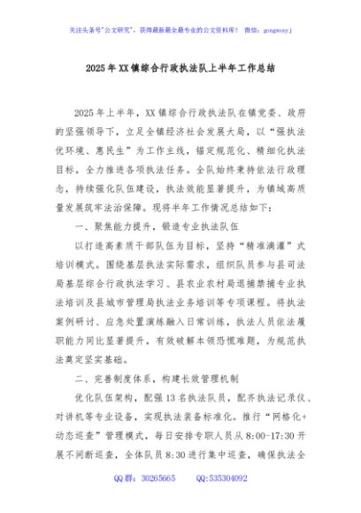 / 2025年XX镇综合行政执法队上半年工作总结