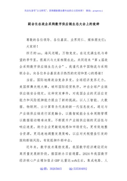 / 副会长在政企采购数字供应链生态大会上的致辞