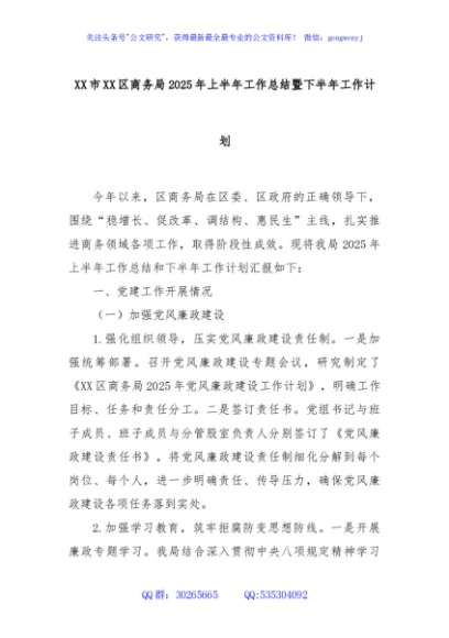 / XX市XX区商务局2025年上半年工作总结暨下半年工作计划