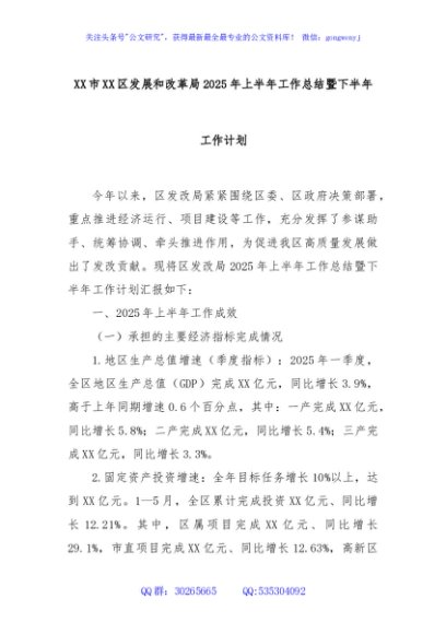 / XX市XX区发展和改革局2025年上半年工作总结暨下半年工作计划