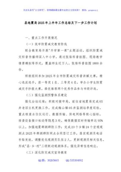 / 县地震局2025年上半年工作总结及下一步工作计划