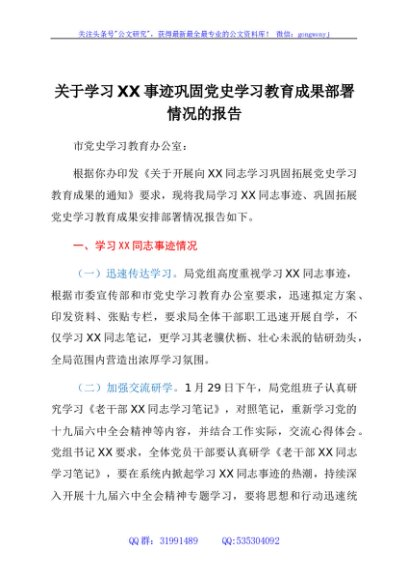 / 关于学习xx事迹巩固党史学习教育成果部署情况的报告