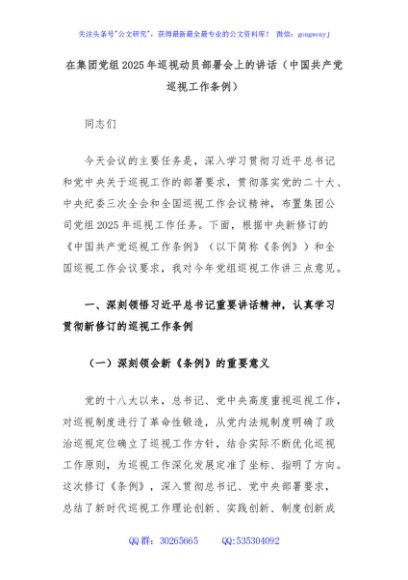 / 在集团党组2025年巡视动员部署会上的讲话(中国共产党巡视工作条例)