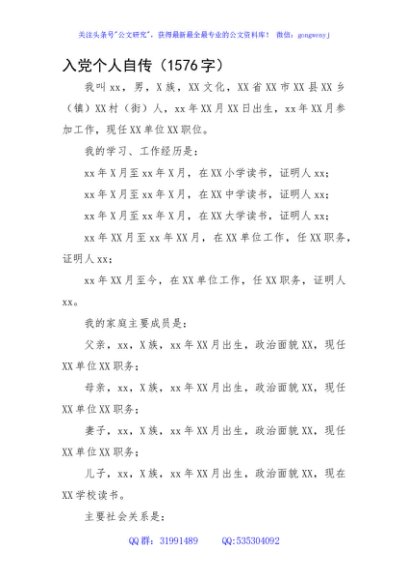 / 入党个人自传