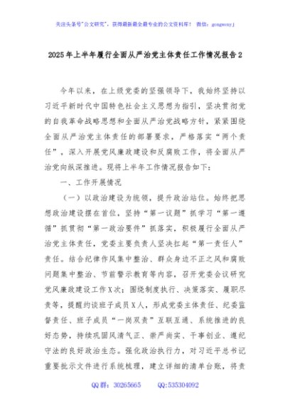/ 2025年上半年履行全面从严治党主体责任工作情况报告2
