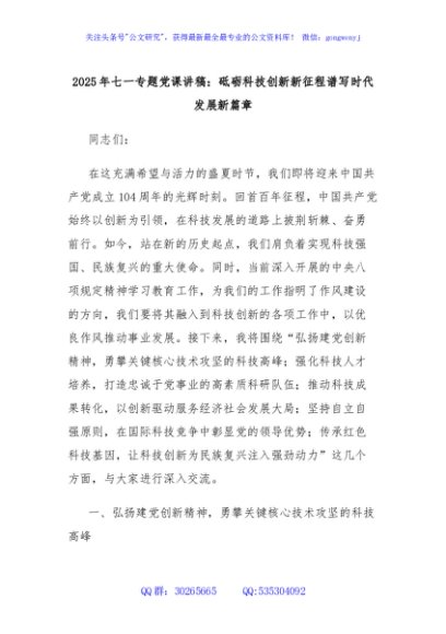/ 2025年七一专题党课讲稿:砥砺科技创新新征程谱写时代发展新篇章