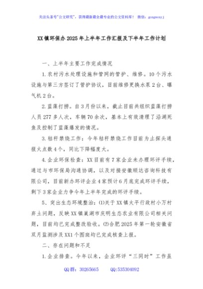 / XX镇环保办2025年上半年工作汇报及下半年工作计划