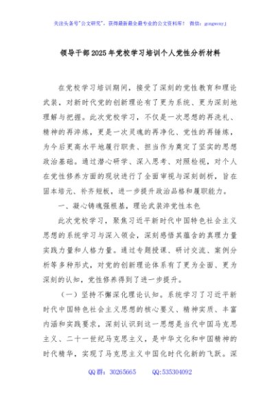/ 领导干部2025年党校学习培训个人党性分析材料