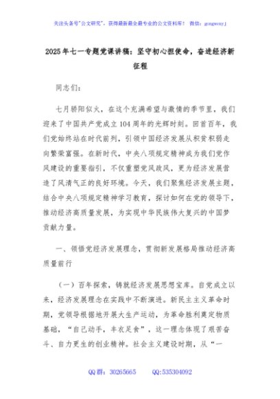 / 2025年七一专题党课讲稿:坚守初心担使命,奋进经济新征程